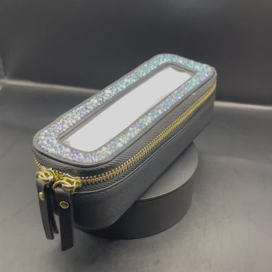 Black Crystal Luxe Etui – Handbeklebt | Für Stifte, Pinsel & Accessories | Unikat