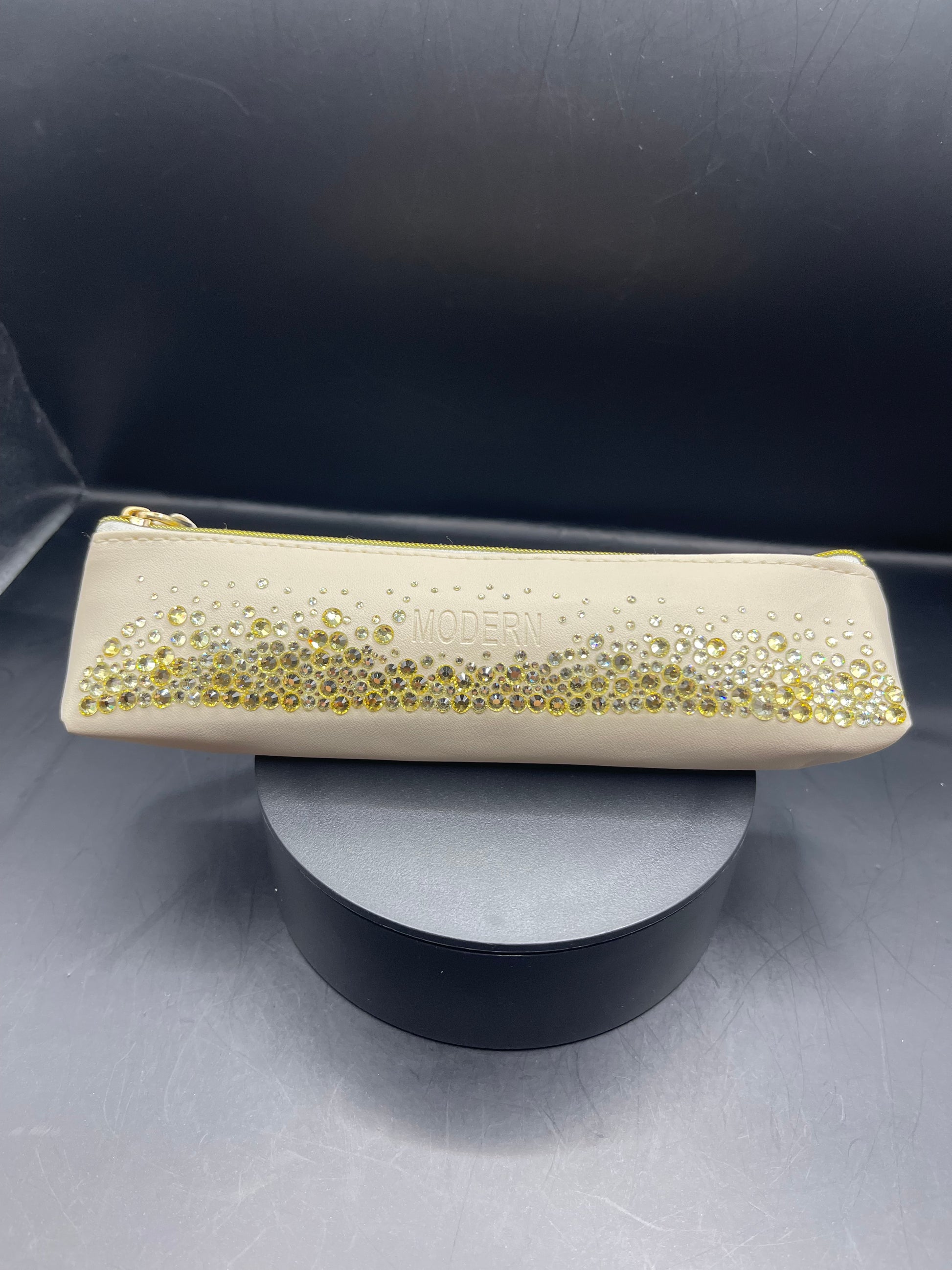 Elegantes Creme-Etui mit Handgesetzten Glitzersteinen – Unikat von TheGlitterThing