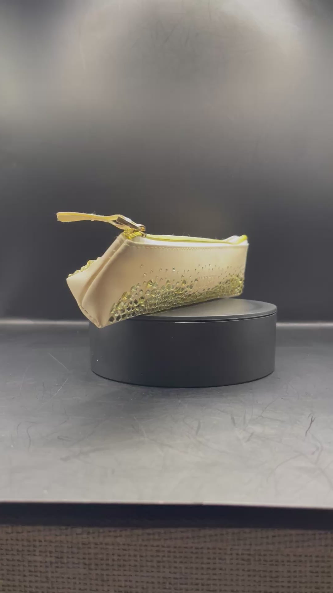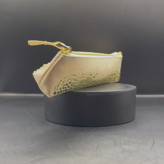Dieses zarte Creme-Etui wurde von Hand mit funkelnden Strasssteinen versehen – jedes Steinchen sorgfältig gesetzt, jedes Stück ein echtes Unikat.