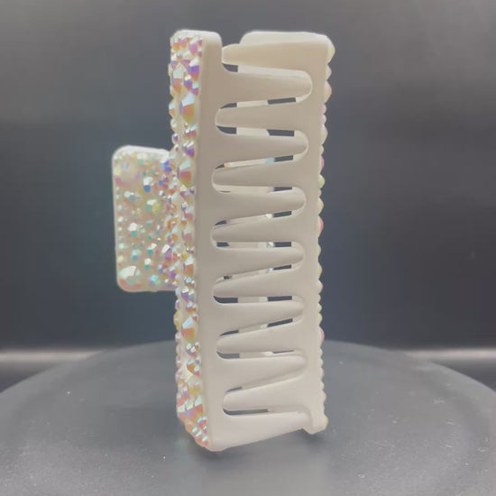 Haarklammer „Crystal AB“ – Weiss mit irisierenden Glitzersteinen (9 cm, rechteckig)