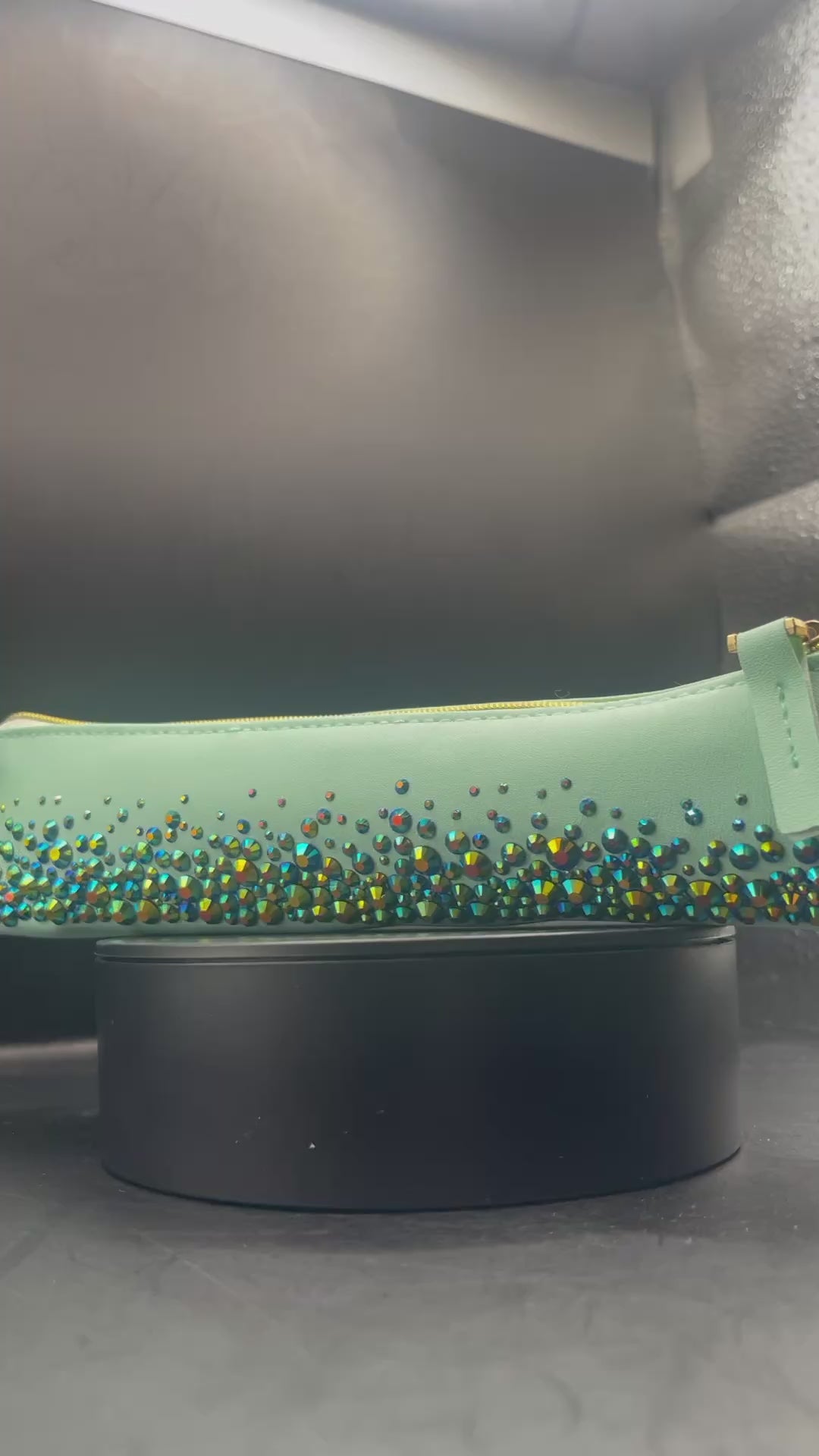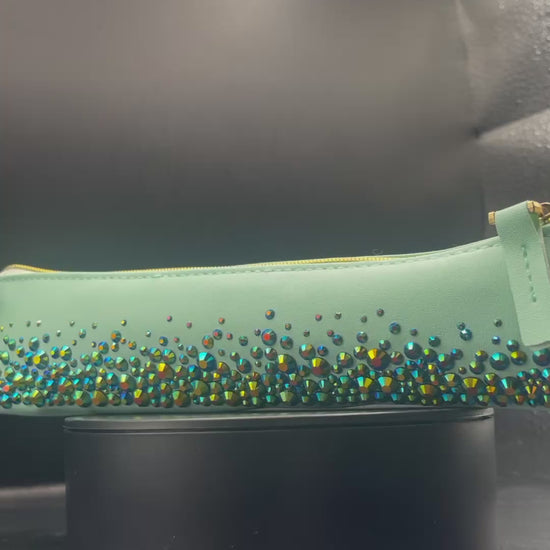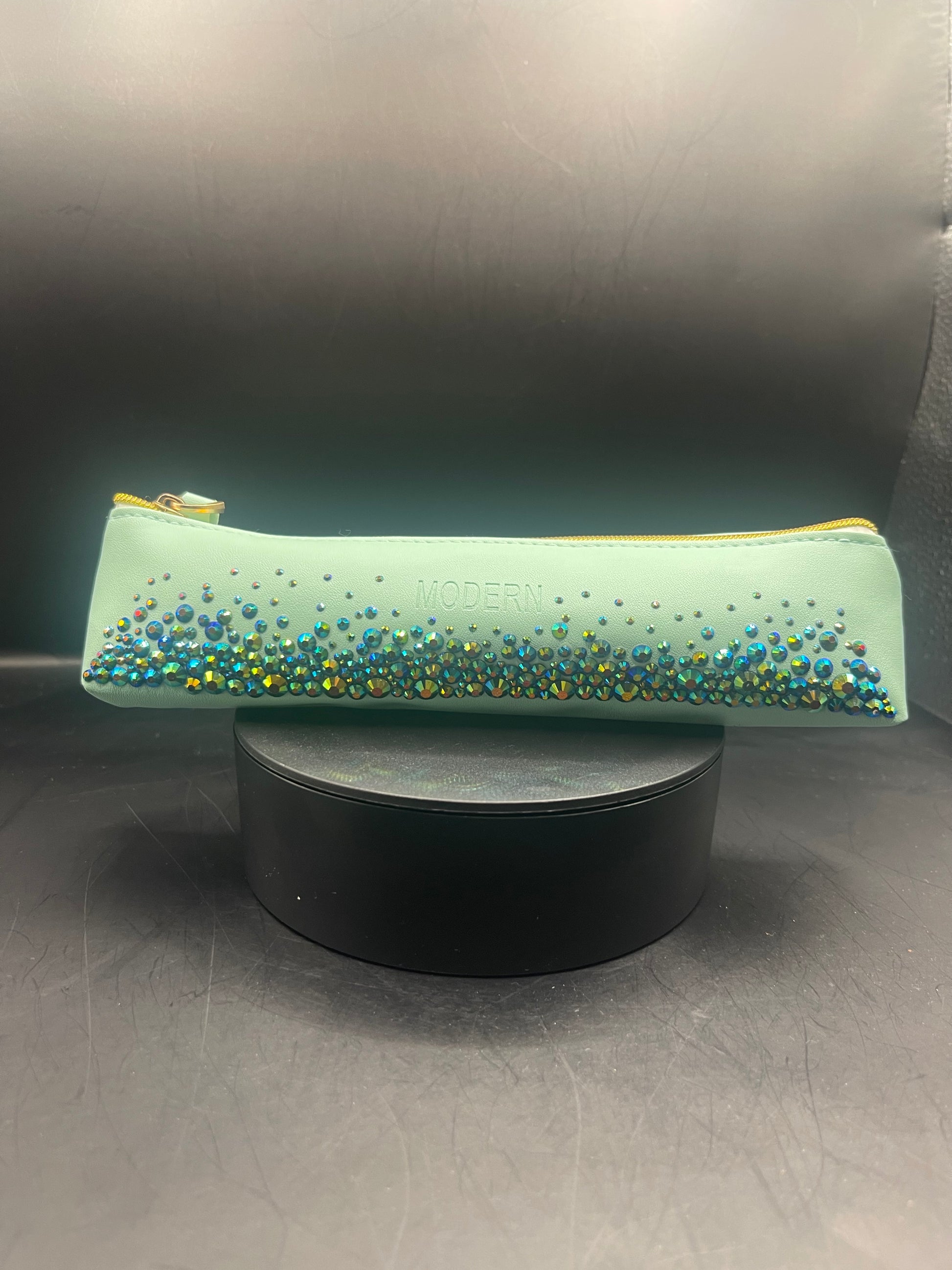 Mintfarbenes Etui mit Regenbogen-Glitzersteinen – Handverziertes Unikat von TheGlitterThing