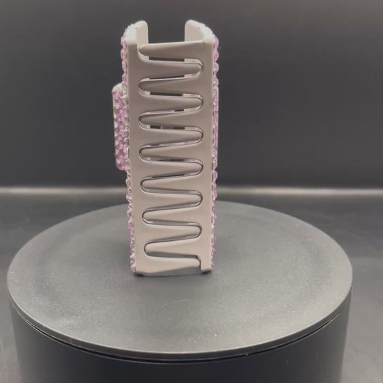 Die stabile 9-cm-Klammer hält das Haar sicher fest – perfekt für Hochsteckfrisuren, Half-Up-Styles oder als funkelndes Detail im Alltag. Die Kombination aus grauer Basis und zarten rosalila Steinen macht die Spange zu einem echten Hingucker und einem wunderschönen Unikat.