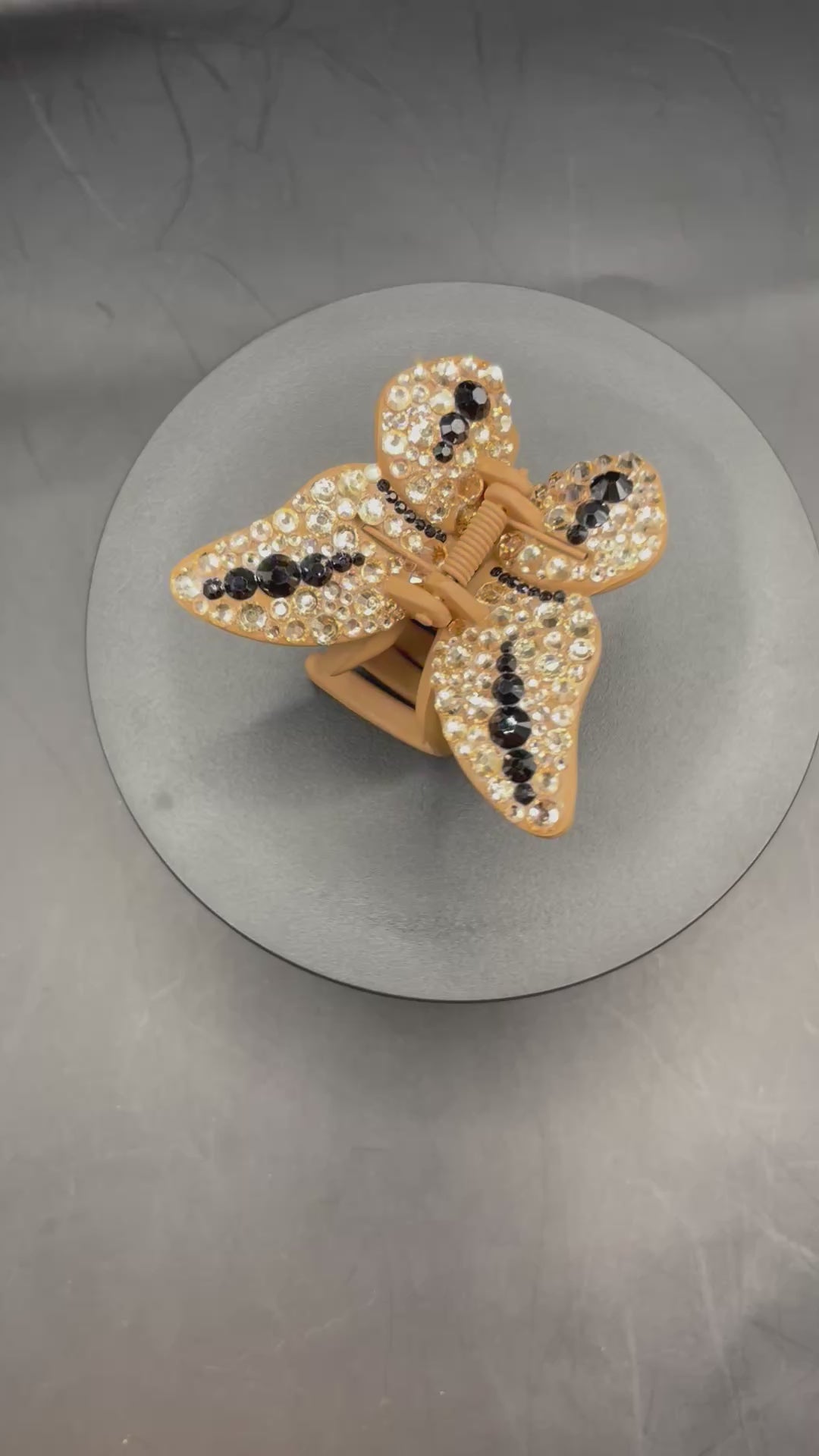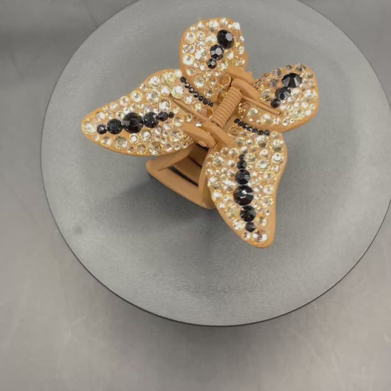Schmetterlings-Haarspange mit Gold- & Schwarz-Strass – Handverziertes Unikat von TheGlitterThing