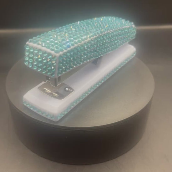 Hellblauer Tacker mit Türkis-Strass – Handverziertes Glitzer-Office-Tool von TheGlitterThing